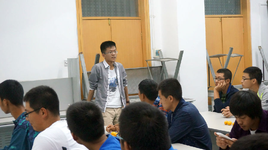 见面会开始,学长们为新生分发水果和零食,大家在欢乐的气氛中开始了见面会。首先实验室13.14届以及新加入的15届成员为大家做自我介绍相互认识,随后学长们为大家讲解了实验室的一些规章制度及研究方向,并对大家的问题给予解答,排解了新加入成员的一些困惑,并在之后的环节中为大家概括了今后学习的大致内容。
