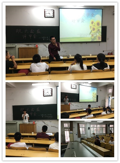 为了更好的服务于同学,体现公平、公正的原则。我院特于9月19日在10102H举办了2016年航天公益奖学金答辩活动。出席活动的嘉宾有范钧朝老师、张朝艳老师、李红霞老师、王旭老师、王蕾老师。