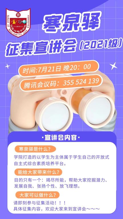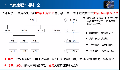 李秀源老师就“寒泉驿是什么”、“能给大家带来什么”、“大家可以做什么”三个角度,从寒泉驿及四大书院的建立目标、组织机构、名字由来、准入准出制度、人员管理、积分制等方面进行宣讲。李老师着重强调学生的“自主性”,详细介绍了联合议事团、院长、副院长、兴趣小组负责人、指导教师等设置和作用,鼓励学生们燃起心中的火焰,迸发青春的激情,在寒泉驿中实现个人的成长。同时,李老师向全院学生发起有关寒泉驿和四大书院文化建设的倡议,鼓励大家创作院徽(Logo)、特征色系、吉祥物、院训、院歌、院旗或其它文化载体,为寒泉驿和四大书院贡献力量,建设属于学生自己的“寒泉驿”。