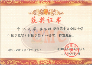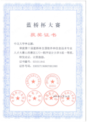 竞赛方面:我在大一时便加入了校级实验室ACM实验室进行学习。在此期间,与同学参加了多项竞赛。这三年的坚持,让我获得了第十一届蓝桥杯大赛软件组国家一等奖、第十届蓝桥杯大赛软件组省一等奖、第十二届和第十届全国大学生数学竞赛省一等奖、全国大学生数学建模竞赛省二等奖、美国大学生数学建模竞赛S奖、中国大学生计算机设计大赛省三等奖。“路漫漫其修远兮,吾将上下而求索”,创新之路,我将探索不止。