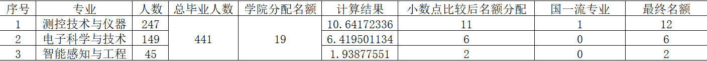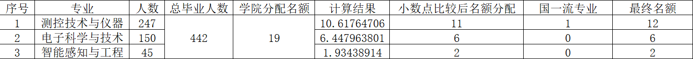 按照教务部《2025年推荐免试研究生名额分配方案》,性爱片 分配名额19个,测控技术及仪器为国一流专业再加1个名额,共计20个名额。依据专业人数(电科有学学籍异动学生,发生变化),具体分配名额如下: