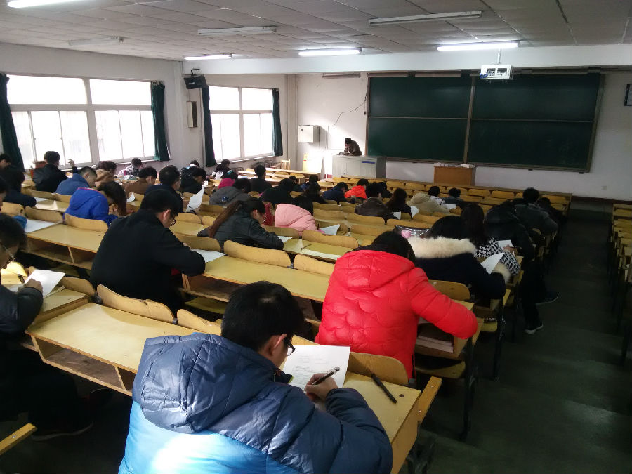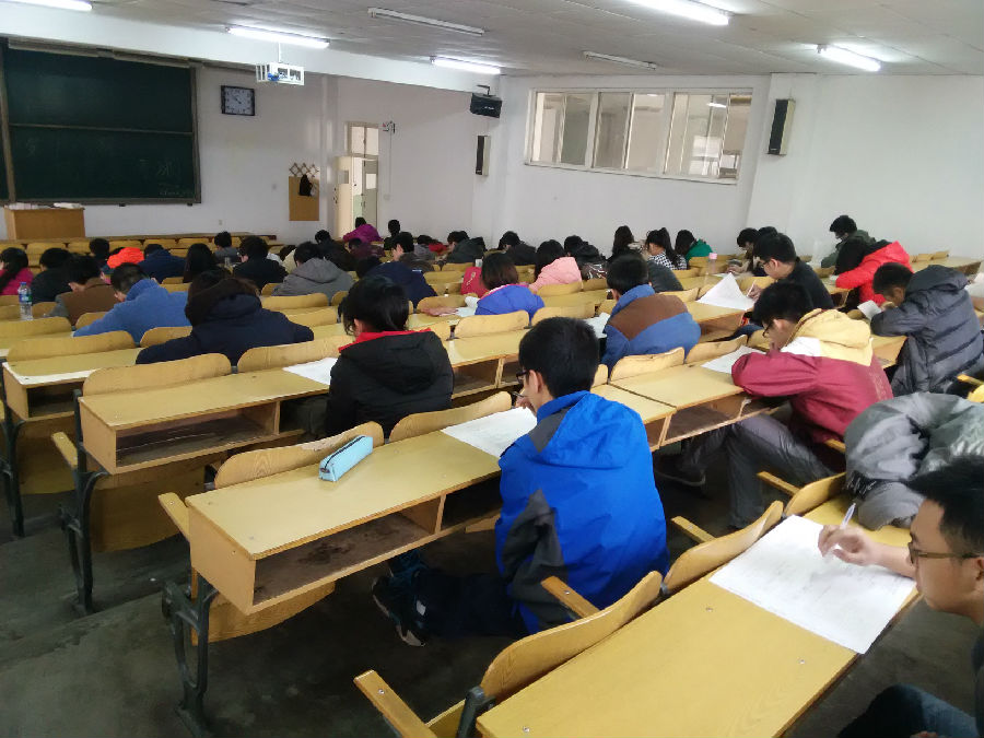 全体入党积极分子在经过党课培训后,于8号教学楼101进行入党积极分子党课结业考试。
