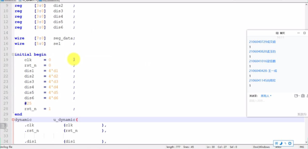 2022年7月15日,集成电路创新实验室成功进行了暑假fpga第一次线上集中培训,实验室fpga方向成员参加了此次培训。本次培训由高旺旺主持,培训的内容是使用Verilog实现按键点灯。这次培训通过高旺旺细心地讲解,一步步的带领大一学生完成了Verilog语法知识的回顾,模块设计以及代码实现。21级认真听课,积极讨论和回答问题,学习风气良好。