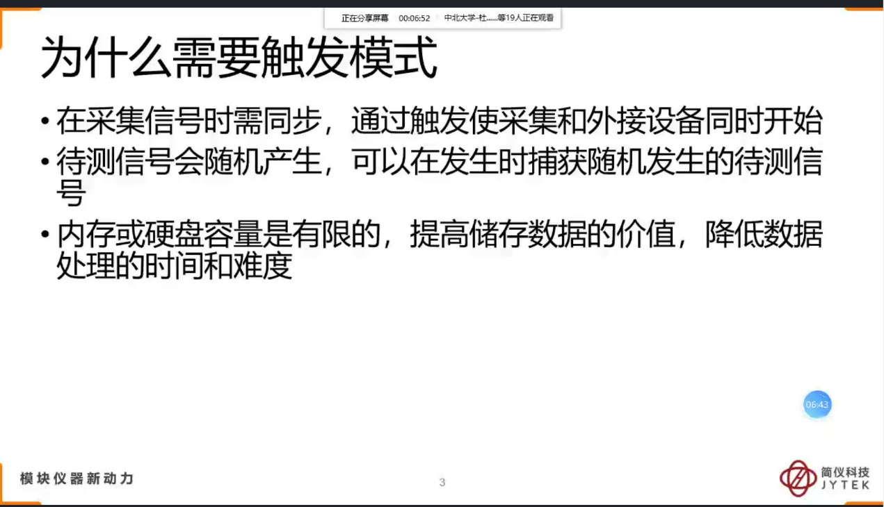2020年6月29日晚19:30,由简仪公司吴珂玶通过qq群直播,讲解了关于DAQ类库:触发采集动能说明-数字、模拟触发、设定方法。
