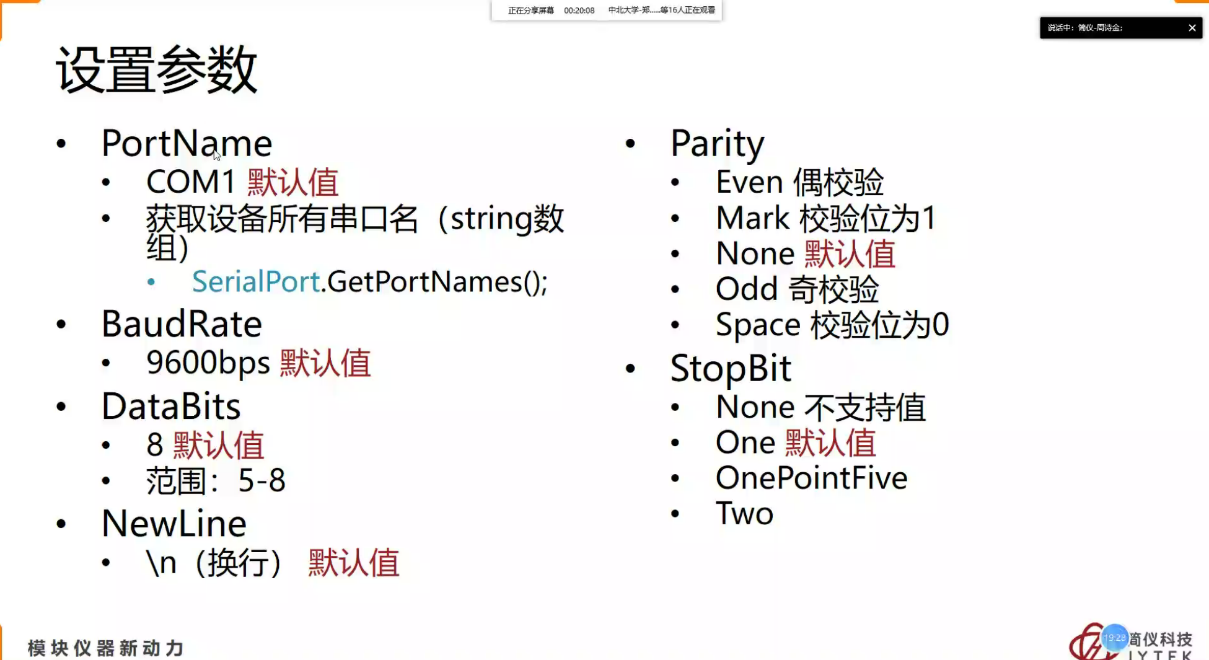 2020年7月6日晚19:30,简仪公司周诗金在QQ群直播如何使用C#来执行串口通信作为周边装置控制。