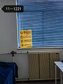 隐患1:电源控制箱附近有遮挡物。 隐患2:实验室内纸箱杂物摆放混乱。 |