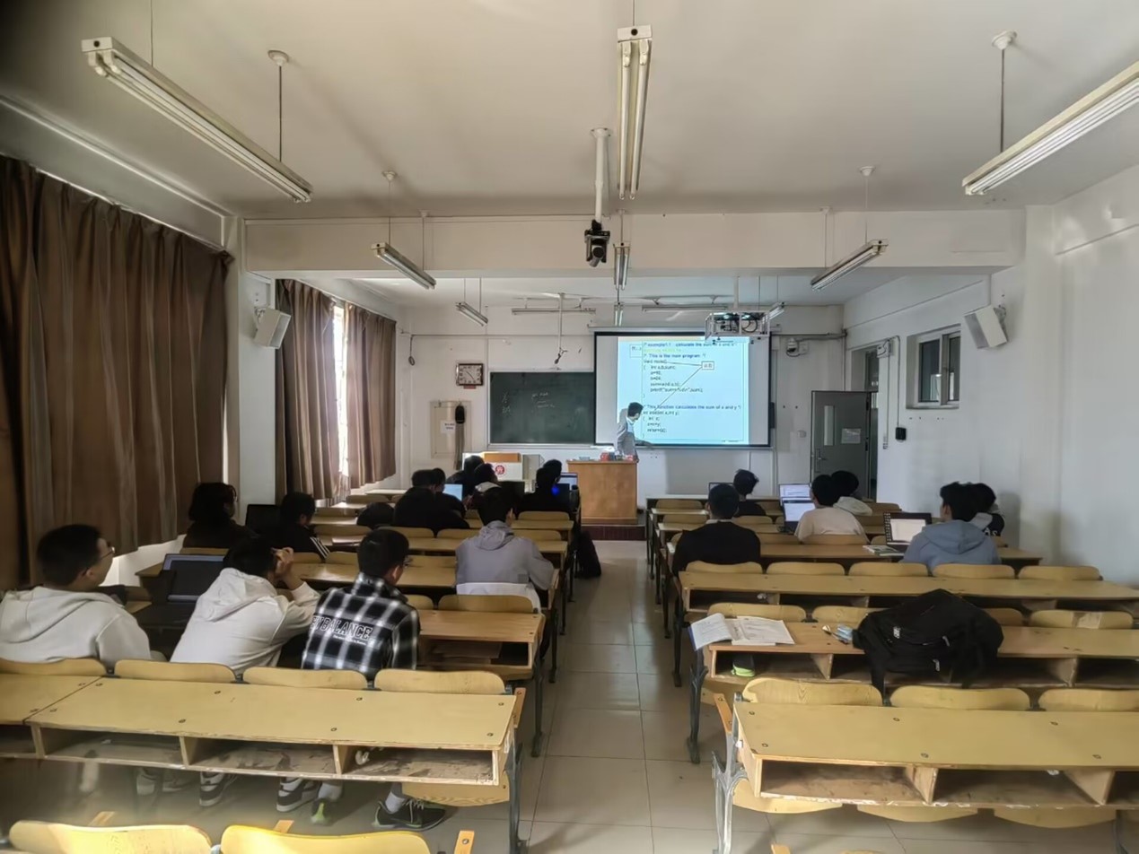 本次培训主要由实验室副主席游逸飞主持,23级的同学们参加了本次科普培训。游逸飞向23级的同学们讲解了C语言的特点,C语言的格式、结构特点、算法、数据类型、运算符与表达式、最简单的C程序设计以及计算机中数的表示、进制转换。在讲解完C语言的相关知识后,游逸飞引领同学们写出了一些基本的程序并使之运行。同学们第一次写稍显复杂的代码,所以在课堂上出现了许多的问题。游逸飞在课间休息时间对同学们的疑问进行了详细解答。通过当堂练习和辅导,游逸飞帮助同学们快速掌握了本节课的C语言知识,并解决了一些大家C语言知识上的问题,与此同时也激发了他们学习C语言的热情。最后游逸飞在洛谷团队上发布了一些课后测试,并要求同学们完成后向自己的组长汇报,由各组组长检查监督作业完成情况,以便更好地巩固培训所学知识。