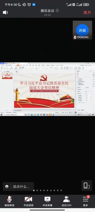电子科学与技术党支部于线上召开组织生活会,开展学习习近平总书记致首届全民阅读大会贺信精神的活动。