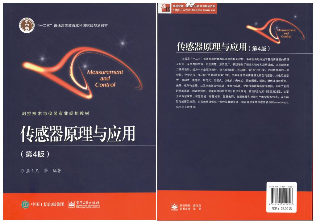 修订教材:《传感器原理与应用(第四版)》孟立凡等编著,电子工业出版社,202012