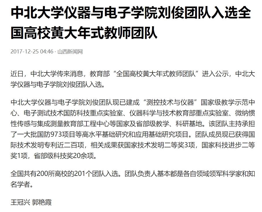 2017年12月25日,山西新闻网发布性爱片 刘俊团队入选全国高校黄大年式教师团队