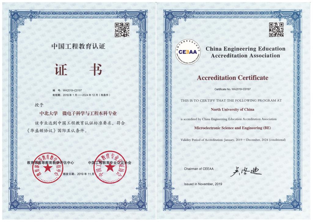 通过工程教育认证专业:微电子科学与工程